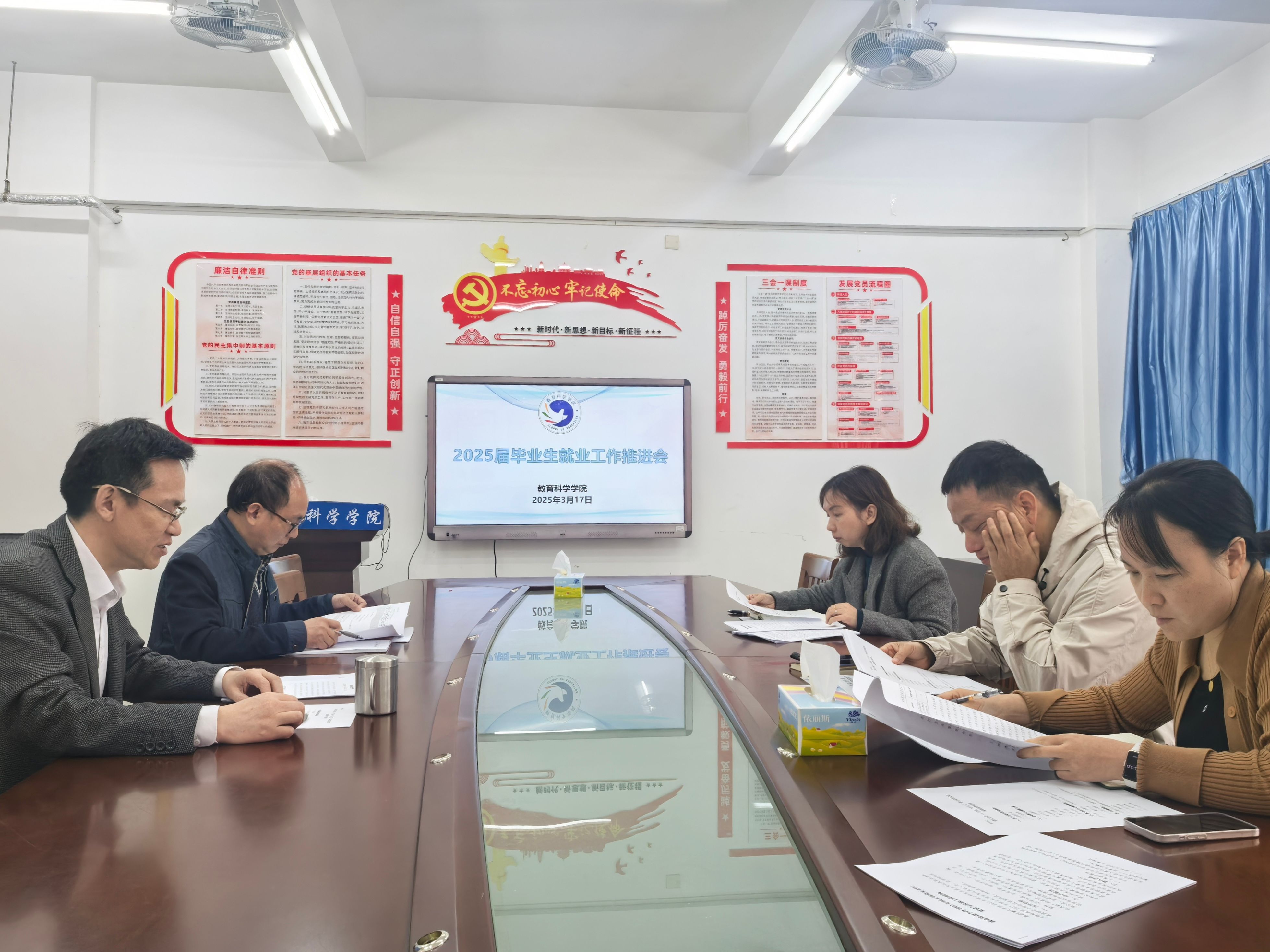 3月17日上午,yl23455永利集团在第三教学楼218会议室召开2025届毕业生就业工作推进会。学院党委书记蔡振治、院长文雪、副书记何秀华、副院长曾苗苗和黄华等领导出席会议。
