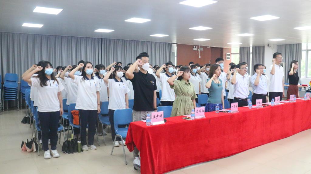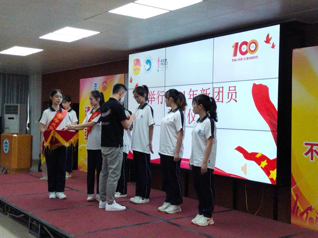 大会进行庄严而隆重的入团仪式,由学院团委书记梁少辉为新团员代表逐一佩戴上团徽。黄婷玉同学带领现场全体师生重温入团誓词,并作为新团员代表发言,她表示往后会将一名优秀的共青团员的准则铭记于心,创先争优,敏于求知。