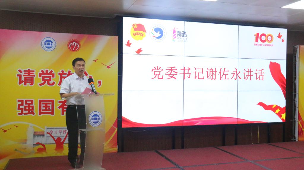 谢佐永代表学院党委,对过去一年共青团在校园疫情防控、“三下乡”志愿服务活动、校园文化建设、技能竞赛、教学科研等重点工作中的贡献表示充分肯定,并对团员青年提出期望,希望广大青年要自觉对标习近平总书记提出的共青团员“五个模范”的标准和要求,在实现民族复兴的赛道上奋勇争先。