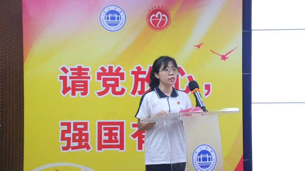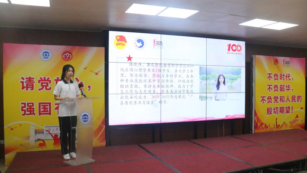荣获广东省优秀共青团员荣誉的陈晓丹同学进行经验分享,她回顾了大学三年以来的学习历程,她表示,在遇到逆境时,党支部是她坚强的后盾,是照亮她前路的灯塔。过去的荣誉将激励她对未来提出更高的要求。她勉励与会的学生骨干们要牢记服务同学的宗旨,发挥先锋模范作用。