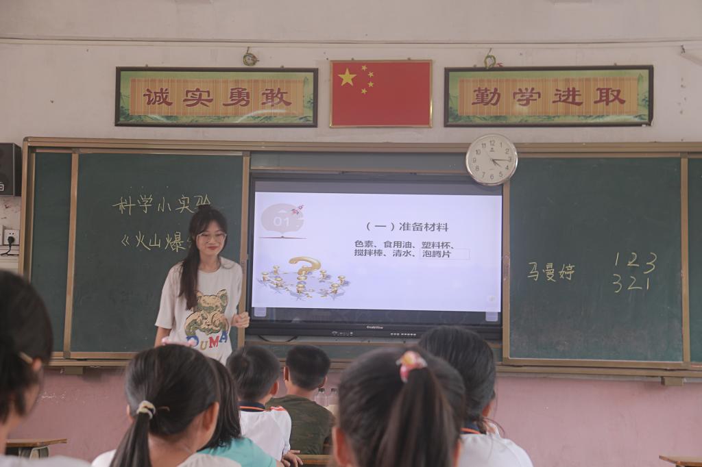 百年大计,教育为本。乡村振兴,教育先行。两天半的义教课堂中,实践团的同学们为冲坑小学的六十余名同学带去了丰富多彩的教学内容,包括音乐课堂、美术课堂、朗诵课堂、科学课堂、安全教育、理想教育等。教学形式别具创新,比如通过美术课防疫口罩的设计,既讲述防疫知识,又能发挥同学们的想象力;通过播放永利y23455招生视频《你好,新生》及军训汇演视频,带同学们写下一封给自己未来的信,进行理想信念教育;通过我校国旗护卫队的升旗仪式,为学生开展一次“行走的思政课”;进入《半生雪》歌曲的学习等等。