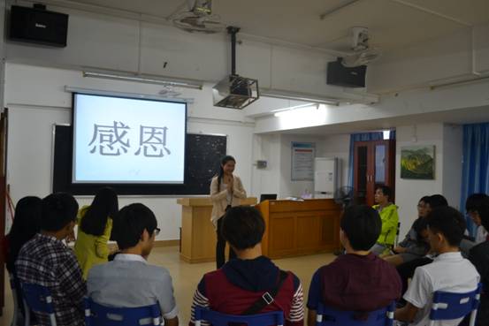 讲座中,程晓琪主要结合自己对家庭、学习、恩师、工作与比赛和生活五个方面的感恩之情出发和大家一起探讨感恩的生活习惯。庄梦琦则就自己的大学历程,工作心得,生活感悟和同学们交流了:优于别人,并不高贵,真正的高贵应是优于过去的自己。感谢生活,以真诚的心欣赏周边事物,以真诚的心对待每一个人,以负责的心做好份内的事,以宽容的心包容伤害你的人,以平常的心接受以发生的事实,以感恩的心感谢所有的朋友。在讲座中,庄梦琦给在座的师弟师妹忠诚的建议:做好定位;相信自己;脚踏实地;多结交比自己更优秀的人。她讲到,大学时期就该多读书,学习的重要性在职场不容忽视,请同学们谨记“一万个小时定律”。最后,她强调:“感恩是幸福的偏方。”讲座赢得了同学们发自内心的掌声。
