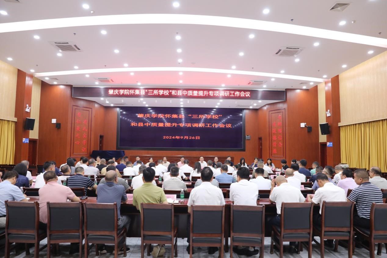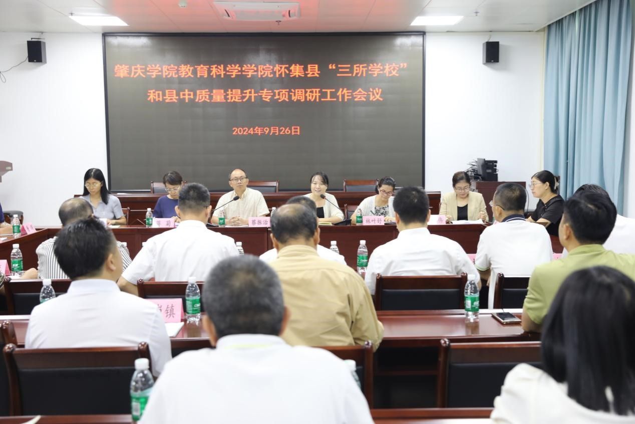 2024年9月26日,yl23455永利集团领导与文学与传媒学院领导、教授与专家一行18人到怀集开展“三所学校”和县中质量提升专项调研工作。怀集县教育局副局长石棣飞、县教师发展中心主任、19个乡镇(街道)分管教育领导,县教育局相关股室负责人,各公办高中校长,乡镇中学、中心小学(学校)校长共80多人参加调研会。