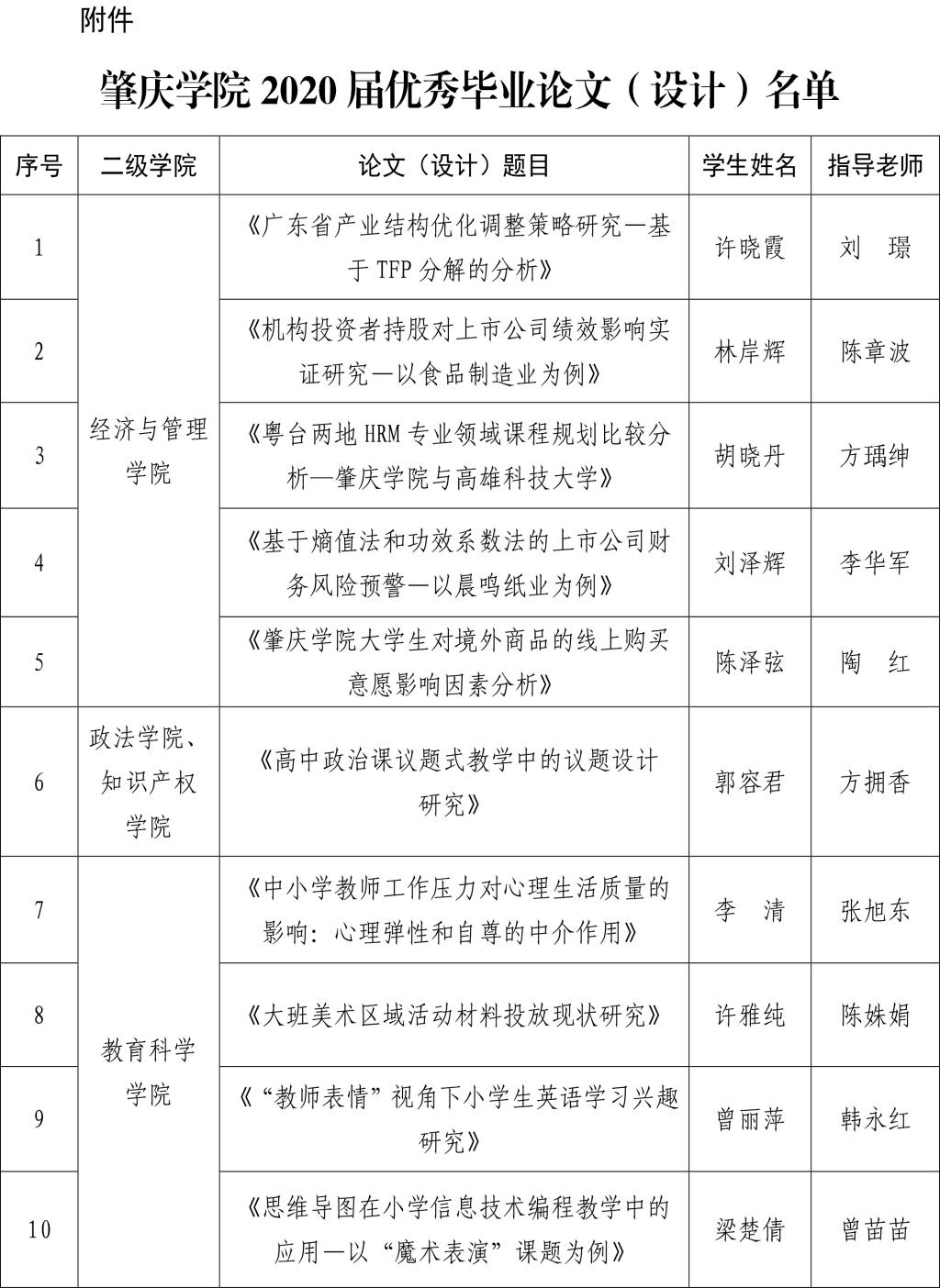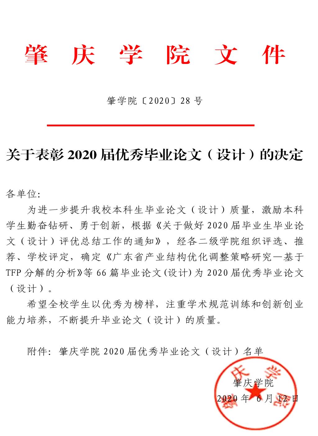肇学院28号关于表彰2020届优秀毕业论文(设计)的决定