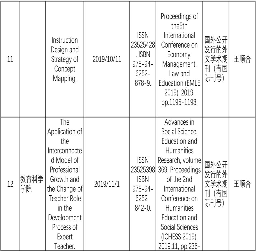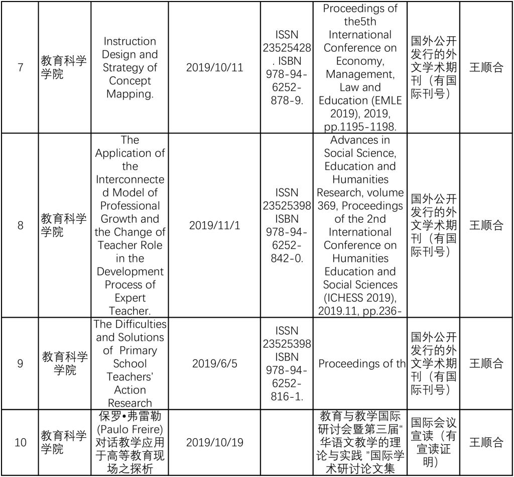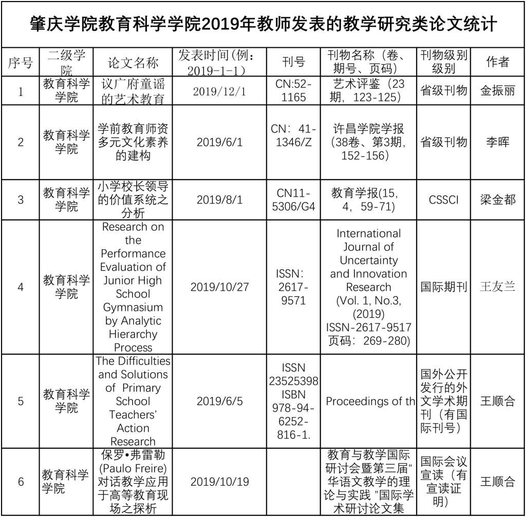 yl23455永利集团2019年教师发表的教学研究类论文统计
